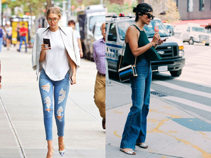 ดูเหมือนว่าเทรนด์กางเกงยีนส์ขายาวเมื่อปีที่แล้วนั้น จะเน้นที่ทรง mom jeans เอวสูงขาเต่อ และ boy friend jeans ทรงเอวต่ำพับขา ถึงแม้ว่าในปีนี้เราจะยังสามารถสวมกางเกงยีนส์ในเทรนด์ของปีที่แล้วได้บ้างแต่ทรงกางเกงยีนส์ขายาวแบบใหม่ที่สาวๆน่าจะสอยมาสวมได้แล้ว จะเป็นกางเกงยีนส์ทรงขากระบอกเข้ารูป และมีขากางเกงยีนส์ยาวระดับตาตุ่ม ไม่ยาวเกินไปและไม่สั้นเต่อจนเกินไป สามารถสวมใส่กับเสื้อผ้าได้หลายลุคแถมยังดู casual อีกด้วย แต่ถ้าไม่ชอบสวมกางเกงพอดีตัว ลองดูกางเกงยีนส์ทรงขาบานมาสวมยังได้อยู่ สามารถนำมาแมทช์กับเสื้อสายเดี่ยวในไทยได้เลยล่ะ