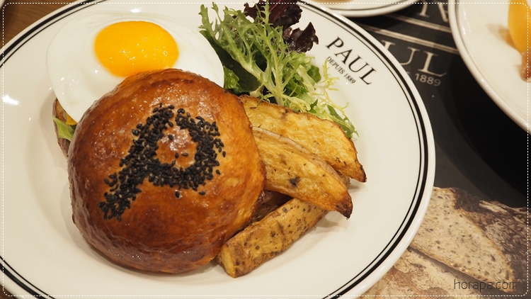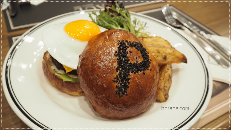 ขนมปังที่ใช้ในเบอเกอร์นี่ไม่ธรรมดานะคะ นอกจากจะมีงาเป็นรูปตัว P แล้ว เนื้อขนมปังยังอร่อยมาก