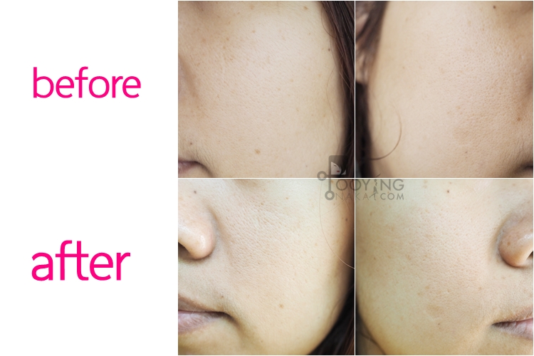 หลังมาส์ก (ผิวไม่ได้ขาวขึ้นอย่างในภาพนะคะ) สิ่งที่รู้สึกได้คือความกระชับของผิว รูขุมขนก็กระชับขึ้นด้วยค่ะ