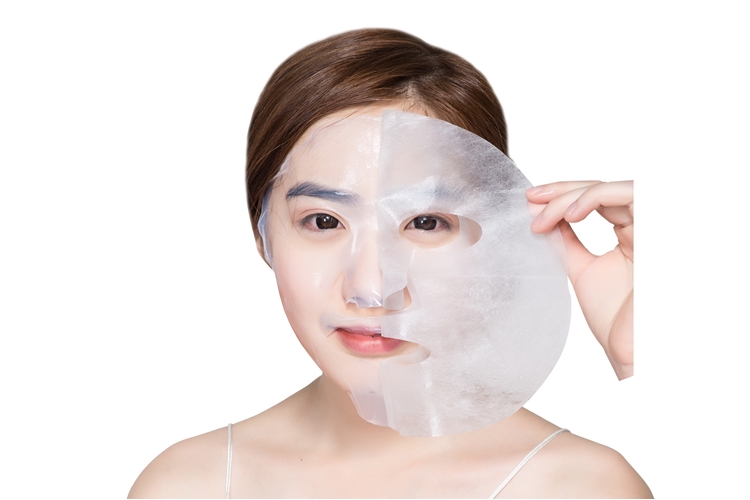 2.วางแผ่นมาส์กด้านเนื้อนุ่มลงบนผิวหน้าปรับให้พอดี แล้วค่อยๆเกลี่ยให้แนบสนิทกับผิวหน้า แล้วดึงแผ่นฟิล์มอีกชั้นออก