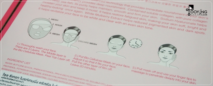 1.ล้างหน้าให้สะอาด แผ่นมาส์กจะมี3ชั้น โดยชั้นกลางคือแผ่นมาส์กไบโอเซลลูโลส ลอกแผ่นฟิล์มด้านหนึ่งออก