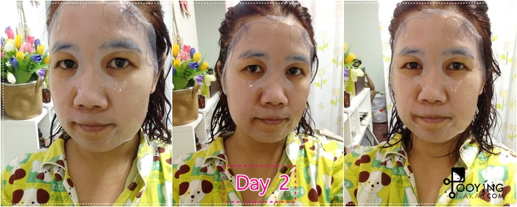 และเพราะนี่เป็นวันแรกครั้งแรกที่ลอง หลังจาก 20 นาที เอามาส์กออก ความชุ่มบนมาส์กยังคงเหลือนิดหน่อยค่ะ