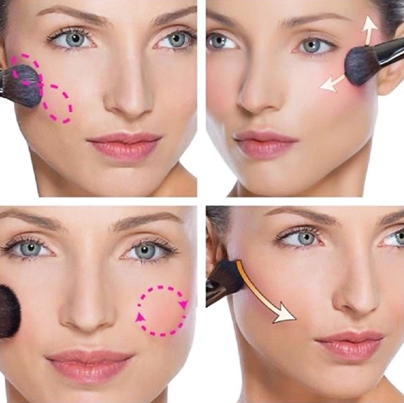 บริเวณโหนกแก้มจะเห็นได้ชัดขึ้นเมื่อเรายิ้ม ซึ่งเป็นบริเวณที่เอาไว้เป็นแนวทางในการปัดแก้ม ให้ได้พวงแก้มที่เป็นธรรมชาติและดูชัดขึ้นเมื่อเรายิ้ม
