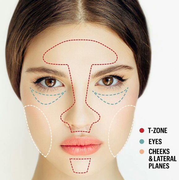คงเคยได้ยินกันบ่อย ฉะนั้นให้นึกถึงอักษรตัว T เอาไว้ ก็คือบริเวณหน้าผากและจมูกจนถึงคาง เป็นบริเวณที่มักเกิดความมันบนใบหน้าได้ง่าย