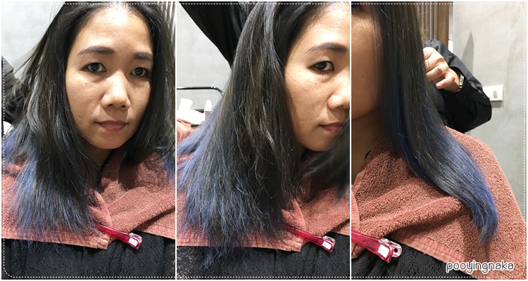 กว่าจะเลือกสีผมที่อยากจะทำได้ ต้องขอคำแนะนำจากช่างพี่อ้อม ซึ่งพี่อ้อมก็ใจดีมาก แนะนำทุกอย่าง และนกคิดว่าไหนๆก็ปีใหม่แล้วทำสิ่งที่ไม่เคยทำไปเลย ก็เลยเลือกสีน้ำเงินค่ะ ซึ่งพี่อ้อมก็มีเทคนิคที่ทำให้สีผมออกมาสวยมาก