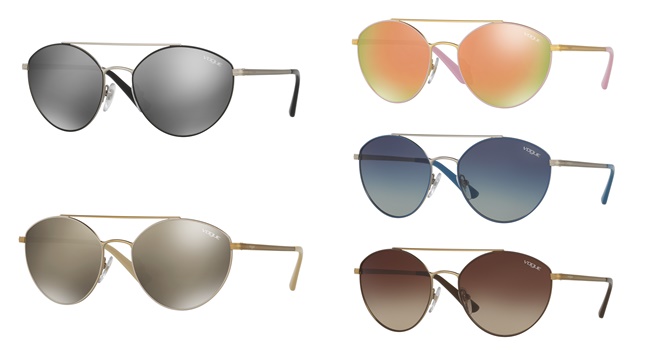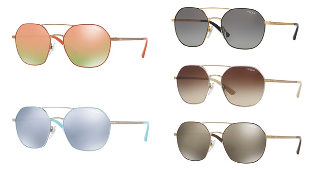 ดีไซน์ที่เน้นความร่วมสมัย ขอบคิ้วสูง มุมตัดที่ประณีตหมดจด น้ำหนักเบา และการจัดองค์ประกอบขั้นสูงของโลหะผิวด้านและการ เคลือบสีฝุ่น คือ นิยามของแว่นตาที่นำสมัยของคอลเลคชั่น In Vogue ของแว่นกันแดดแบบขาเชื่อมคู่รูปทรงแปลกตา เพิ่มรูปลักษณ์ แห่งความทันสมัยและให้ความรู้สึกของความเป็นผู้นำเทรนด์ที่โก้เก๋ มีวางจำหน่ายในโทนสีพาสเทลอ่อน เพิ่มความสวยงามด้วยเลนส์ กระจกทันสมัยในโทนสีคลาสสิกไล่ระดับและโทนสีคลาสสิกเอนกประสงค์ ด้วยกรอบโลหะที่มีน้ำหนักเบาและยืดหยุ่นจึงทำให้แว่นตา รุ่นนี้ทำให้ทัศนวิสัยในการสวมใส่ดีเยี่ยม มีวางจำหน่ายในสีดำด้าน สีน้ำตาลด้าน สีแสดด้าน สีน้ำเงินด้าน สีครีมด้าน (ราคา 3,950 บาท)