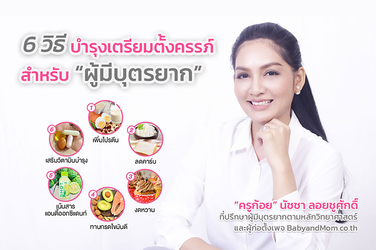 ดังนั้นการได้รับวิตามินและแร่ธาตุที่เพียงพอ "ก่อนการตั้งครรภ์" จึงเป็นปัจจัยหนึ่งที่ส่งผลต่อโอกาสในการตั้งครรภ์ และยังส่งผลต่อการเจริญเติบโตของตัวอ่อนที่สมบูรณ์ และนี่คือ 6 วิธีบำรุงเตรียมตั้งครรภ์สำหรับผู้มีบุตรยาก ที่ครูก้อยได้ศึกษาและรวบรวมงานวิจัยเกี่ยวกับหลักโภชนาการ โดยเน้นอาหาร 70% วิตามิน 30% “อาหารก็ต้องกิน วิตามินก็ห้ามขาด" บำรุงก่อนเตรียมตั้งครรภ์ล่วงหน้า 3 เดือน ยิ่งบำรุงอย่างถูกต้อง ถูกวิธี และต่อเนื่อง โอกาสประสบความสำเร็จในการตั้งครรภ์และเป็นครรภ์ที่สมบูรณ์แข็งแรงก็จะมีมากขึ้น “ครูก้อย” นัชชา ลอยชูศักดิ์ กล่าวทิ้งท้า