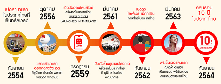 ยูนิโคล่ แบรนด์เครื่องแต่งกายระดับโลกจากญี่ปุ่น ฉลองครบรอบ 10 ปี ในประเทศไทย เพื่อขอบคุณคนไทยทุกคนที่ให้การต้อนรับและสนับสนุนยูนิโคล่อย่างดีมาโดยตลอดตั้งแต่วันแรกที่ ยูนิโคล่เข้ามาในประเทศไทย ทำให้ยูนิโคล่สามารถบรรลุเป้าหมายทางธุรกิจและยืนหยัดอยู่คู่คนไทยมาตลอดจนถึงปัจจุบัน ยูนิโคล่ถือว่าการครบรอบ 10 ปี ในประเทศไทยเปรียบเสมือนหลักไมล์ความสำเร็จทางธุรกิจ เป็นแรงผลักดันให้ยูนิโคล่สร้างสรรค์ผลิตภัณฑ์ไลฟ์แวร์ (LifeWear) คุณภาพสูง ให้คนไทยสวมใส่ เพื่อชีวิตที่ดีกว่า