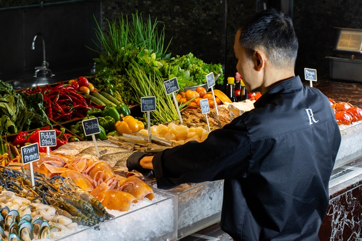 นอกจากนี้ยังมี ซีฟู้ด ออน ไอซ์ (Seafood on Ice) รวบรวมอาหารทะเลสดๆ สเตชั่นอาหารญี่ปุ่น (Japanese Station) ขนทัพความอร่อย มีทั้งซูชิ ซาซิมิ วากิวนิกิริ และอีกมากมาย รวมไปถึง คาร์ฟวิ่งสเตชั่น (Carving Station) ให้คุณได้ลิ้มลอง ซี่โครงเนื้อออสเตรเลียย่าง แซลมอนอบ และขาแกะย่าง สเตชั่นบาร์บีคิว (BBQ Grill Station) ที่มีทั้ง เนื้อสันนอกออสเตรเลีย หมูสามชั้นซอสหม่าล่า และไส้กรอกอิตาเลียน ปิดท้ายความอิ่มเอมด้วยหลากหลายเมนูของหวานทั้งขนมไทยและเบเกอรี่ต่างๆ