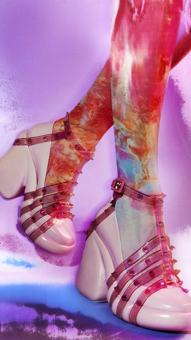 และไฮไลท์ไอเทมต่อมา คือ รุ่น Melissa Becky Punk Love + Jean Paul Gaultier ที่เป็นการนำแฟลตฟอร์มคลาสสิกของแบรนด์ Melissa มาตีความใหม่อย่างสร้างสรรค์ พร้อมด้วยแถบพลาสติกใส 5 แถบประดับด้วยโลหะหมุด สะท้อนคาแรกเตอร์อันโดดเด่นของแบรนด์ฝรั่งเศสและแฟชั่นแบบ Fetishistic