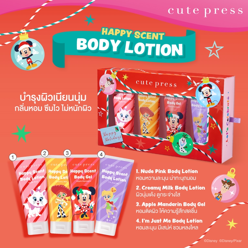 “ล่าสุด Cute Press ร่วมฉลองดิสนีย์ 100 ปี ด้วยคอลเลกชันลิมิเต็ดเอดิชัน “Cute Press Disney Let’s Celebrate 100 Years of Wonder” ที่หยิบเอาขบวนคาแรกเตอร์จากดิสนีย์จากหลากหลายเรื่องราวที่ทุกคนชื่นชอบ อาทิ มิคกี้และผองเพื่อน โฟรเซ่น เหล่าเจ้าหญิงดิสนีย์ ทอย สตอรี่ พินอคคิโอ และอีกมากมาย มาออกแบบในดีไซน์เอ็กซ์คลูซีฟ ลวดลายสุดคิ้วท์ น่าสะสม กับหลากหลายกลุ่มผลิตภัณฑ์ ทั้งกลุ่มเมคอัพ กลุ่มสกินแคร์ และกลุ่มเพอร์ซันนอลแคร์ รวม 44 SKU ตลอดจนจัดทำในรูปแบบกิฟต์เซ็ต เพื่อมอบความสุข เอาใจแฟนดิสนีย์และกลุ่มเป้าหมาย Gen Y – Gen Z”