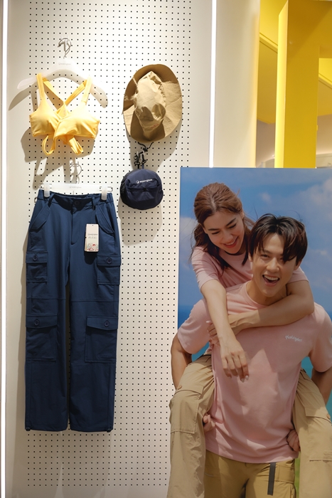เสื้อผ้าในคอลเลกชันนี้จึงไม่ได้มีเพียงชุดออกกำลังกายเท่านั้น แต่ยังมีชุดว่ายน้ำ และเสื้อผ้าสไตล์เอาต์ดอร์ที่ได้ออกแบบให้เข้ากับไลฟ์สไตล์ของทั้งสองคน อาทิ Camper Sweatshirt เสื้อแขนยาวโอเวอร์ไซซ์ที่สามารถใส่ได้ทั้งผู้ชายและผู้หญิง Como crop set บิกินี่เซ็ตสองชิ้นลุคคลาสสิคแพตเทิร์นเสริมสัดส่วนรูปร่างให้ดูดี นอกจากนี้ยังมี Accessories ไม่ว่าจะเป็น หมวก ผ้าขนหนู กระเป๋าผ้า และกระเป๋าเก็บความเย็น ที่มีลายกราฟฟิกสำหรับคอลเลกชันนี้โดยเฉพาะ