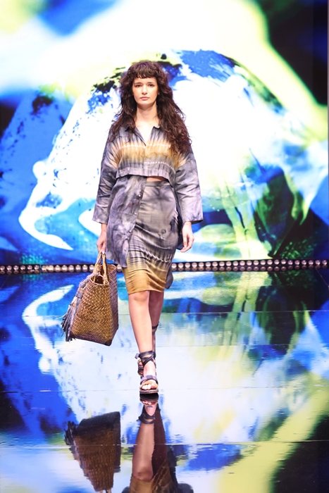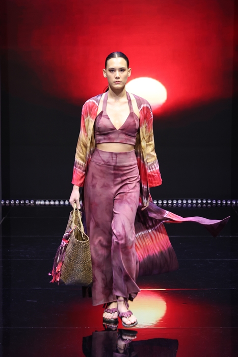 ต่อด้วย สุมามาลย์ เต๋จ๊ะ แบรนด์ ขวัญตา (Khwanta) มากับคอลเลกชัน Beauty of Thai Textile & The Trend of Zero Waste ได้แรงบันดาลใจมาจาก Trend ที่ต้องการรักษ์โลกและการปกป้องสิ่งแวดล้อม ซึ่งในส่วนของ Fashion มี Waste เกิดขึ้นมามากที่สุดจากปัจจัยพื้นฐานทั้ง 5 ดังนั้นจาก Trend ของ BCG และ Zero Waste ทีบูมขึ้นมากๆ หลังจากปี 2022 ที่มุ่งเน้น “การใช้ทรัพยากรให้คุ้มค่าที่สุด” และ “กระทบต่อสิ่งแวดล้อมให้น้อยที่สุด”  นําเอาวัสดุที่เหลือจากขั้นตอนการทอผ้าและการตัดเย็บ มา Upcycle เป็นเสื้อผ้าแฟชั่นสามารถที่ Mix & Match กับผ้าไทยให้ดูร่วมสมัย