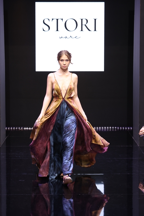 ส่วน ธนุนาฏ เอกะสิงห์ และ แพท ศุภธาราภรณ์ แบรนด์สตอรี่แวร์ (Stori Ware) ออกแบบคอลเลกชัน Elysian Horizons : Sun-Dyed ได้แรงบันดาลใจมาจากช่วงเวลาที่สวยงามและน่าหลงใหลของแสงอาทิตย์ในช่วงเวลาเช้าและค่ำ โดยคอลเลกชันนี้มีความปรารถนาที่จะแปลงความงดงามและความสงบสุขของปรากฏการณ์ธรรมชาติให้เป็นงานศิลปะที่สวมใส่ได้และยังส่งผ่านความรู้สึกและพลังที่ดีให้กับผู้ใส่ด้วยวัสดุธรรมชาติที่ใช้ เช่น ไหมดิบ เทนเซล ลินิน และผ้าคอตตอนเจอร์ซี ถูกเลือกมาเป็นสื่อกลางในการแสดงผลภาพโดยใช้เทคนิคย้อมสีผ้าด้วยมือ โดยมีเป้าหมายที่จะทำให้ได้สัมผัสถึงความงดงามความสงบสุขของการเปลี่ยนแปลงของแสงแดด ที่ฉายลงมาจากท้องฟ้าลงสู่ผืนผ้าได้อย่างชัดเจน
