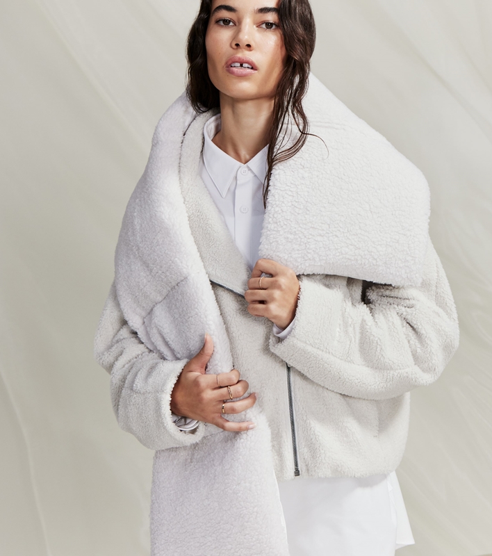 พร้อมผสมผสานรูปทรงโฉบเฉี่ยวเข้ากับซับในที่ให้ความอุ่นสบายและปกเสื้อผ้าฟลีซ