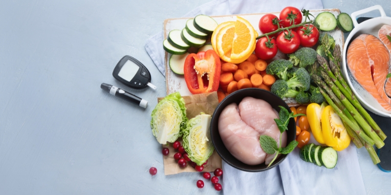 ผู้ที่เป็นโรคเบาหวานควรรับประทานอาหารที่สมดุลและมีคุณค่าทางโภชนาการเพื่อช่วยควบคุมระดับน้ำตาลในเลือด แม้ว่าคำแนะนำด้านอาหารที่เฉพาะเจาะจงอาจแตกต่างกันไปตามความต้องการของแต่ละบุคคล แต่หลักเกณฑ์ทั่วไปต่อไปนี้อาจเป็นประโยชน์ได้: