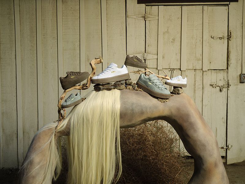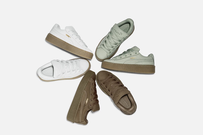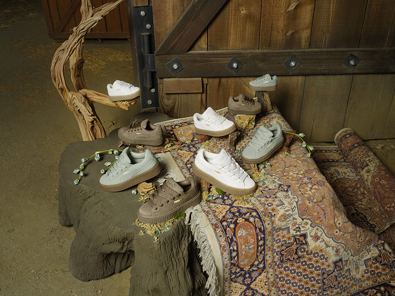 รองเท้าสนีกเกอร์รุ่น Creeper วางขายครั้งแรกในเดือนกันยายนปี 2015 โดยรังสรรค์จากซิลูเอตของรองเท้าสุดไอคอนิกอย่างรุ่น Suede ของ PUMA มาเสริมแพลตฟอร์มและได้รับการขนานนามว่าเป็น Shoe of the Year ประจำปี 2016 จาก Footwear News โดยรองเท้ารุ่น Creeper ไม่เพียงแค่พลิกโฉมวงการสนีกเกอร์ แต่ยังสร้างปรากฏการณ์ครั้งยิ่งใหญ่ให้แบรนด์ PUMA ตลอดทศวรรษที่ผ่านมา ซึ่ง Rihanna ยังคงปรับโฉมรองเท้าให้มีขนาดใหญ่ขึ้น โดดเด่นและเก๋มากยิ่งขึ้น ด้วยการออกแบบในลักษณะโอเวอร์ไซต์พร้อมพื้นรองเท้ายางที่แปลกใหม่