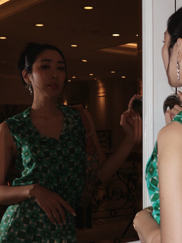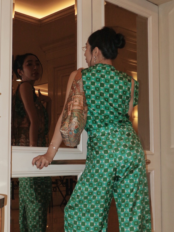 ขยับมาที่พิธีกรมากความสามารถ โซล วีรเมธาชัย เผยไอเดียสร้างความมั่นใจในการเล่นสนุกกับไอเทมลายปรินต์ที่ไม่ได้ใส่ยากอย่างที่คิด “วันนี้จัดเป็นโททอลลุคลายปรินต์ที่อินสไปร์มาจากดอกลำดวน ใส่แล้วสวยเนี้ยบมาก เป็นผ้าไหมที่ดีที่ถูกต้อง เสื้อแขนกุดเข้าเซตพอดีกับกางเกงฟิชเชอร์แมน เพิ่มดีเทลปิดจบด้วยกระเป๋าโฮโบสะพายข้าง ได้เป็นลุคสวยฉ่ำ จะดินเนอร์หรูหรือจะลุยไปไหนก็ได้หมด เลิฟมาก”