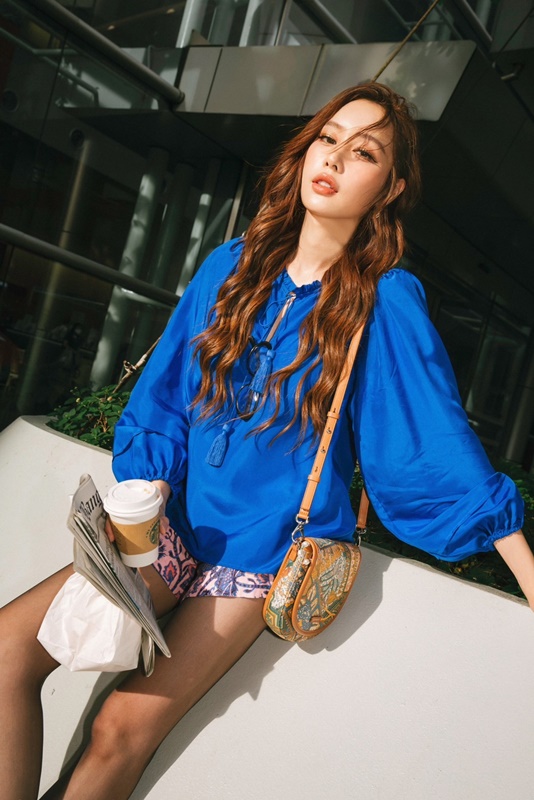 เริ่มกันที่ตัวมัมสุดแซ่บ ดีกรีนักแสดงและนางเเบบชื่อดัง บลอสซั่ม-ชนัญชิดา รุ่งเพชรรัตน์ ที่มาแชร์ทริกการแต่งตัวให้สนุก “ลุคไปเที่ยววันนี้ท่อนบนเป็นเสื้อเบลาส์ผ้าไหมแขนยาวทรงหลวมสีน้ำเงิน ซึ่งเราไม่คิดว่าผ้าไหมจะใส่สบายขนาดนี้ เลือกแมตช์กับกางเกงขาสั้นลินินลายปรินต์ฟลอรัลสีม่วงที่เก๋มาก ๆ ที่ขาดไม่ได้คือต้องคอมพลีตลุคด้วยกระเป๋าสะพายข้างลายสวย ลุคนี้จัดเมกอัปเบา ๆ เน้นความสบาย ๆ แต่น่ารักมากค่ะ”