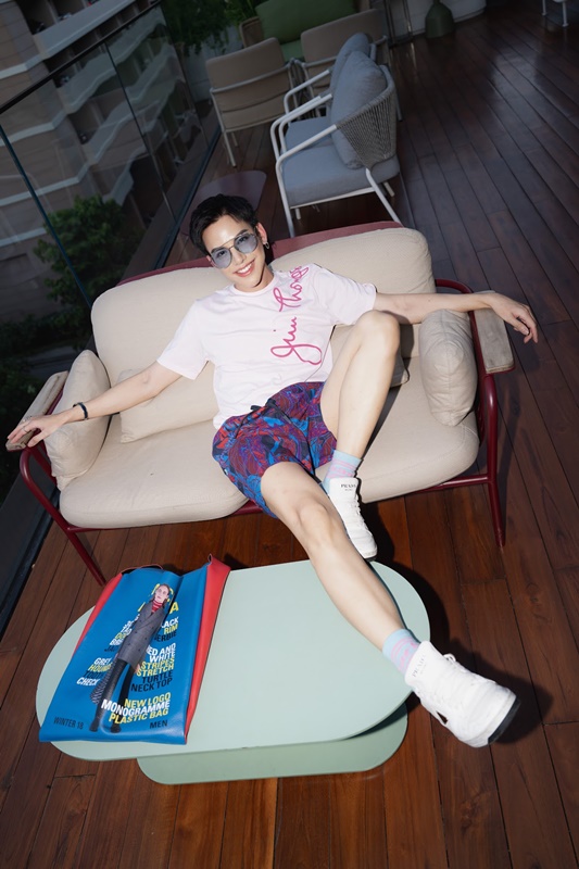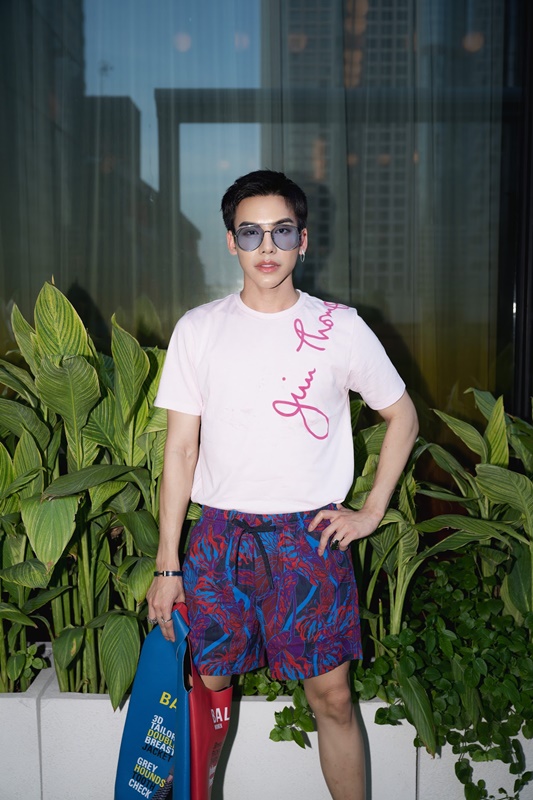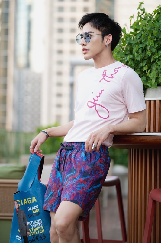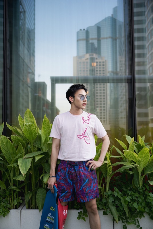 ปิดท้ายกันด้วยศิลปินความสามารถครบเครื่องอย่าง ต้น-ธนษิต จตุรภุช ที่นำเสนอสไตล์การแต่งตัวที่สะท้อนตัวตน “วันนี้มาเป็นลุคสบาย ๆ ด้วยเสื้อยืดลายซิกเนเจอร์ Jim Thompson หยิบมาจับคู่กับกางเกงขาสั้น ซึ่งก็ยังมีลูกเล่นที่สนุกด้วยลายปรินต์สุดเท่ เป็นลุคที่แต่งแล้วสนุกลุคหนึ่งเลยก็ว่าได้ครับ”