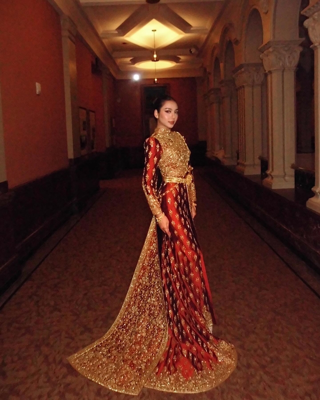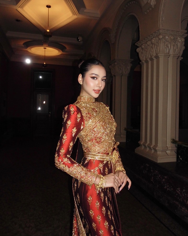 ชุดไทยศิวาลัยประยุกต์สีแดงชาดปักด้วยคริสตัลสีทองสวาลอฟกี้ชุดนี้ เป็นผลงานที่รังสสรรค์ให้กับ ดินสอสี-พนิดา เขื่อนจินดา นางสาวไทย ปี 2567 ซึ่งถูกออกแบบมาอย่างประณีต โดยมีการผสมผสานระหว่างความคลาสสิกและความทันสมัยเข้าด้วยกันอย่างลงตัว เน้นย้ำถึงความงดงามและความเป็นไทยที่สะกดทุกสายตา ชุดนี้ได้มีโอกาสเฉิดฉายและสร้างปรากฏการความงดงามในงานเลี้ยงอาหารค่ำระดับสูงที่รัฐมินนิโซตา ประเทศสหรัฐอเมริกา เป็นการยืนยันถึงคุณภาพและความโดดเด่นของผลงานดีไซน์ระดับไฮคลาสที่ทางห้องเสื้อได้รับการยอมรับในระดับสากล ชุดนี้ไม่เพียงแค่สำหรับการแต่งกาย แต่ยังเป็นการสื่อสารภาษาแห่งความเป็นไทยไปทั่วโลกอีกด้วย