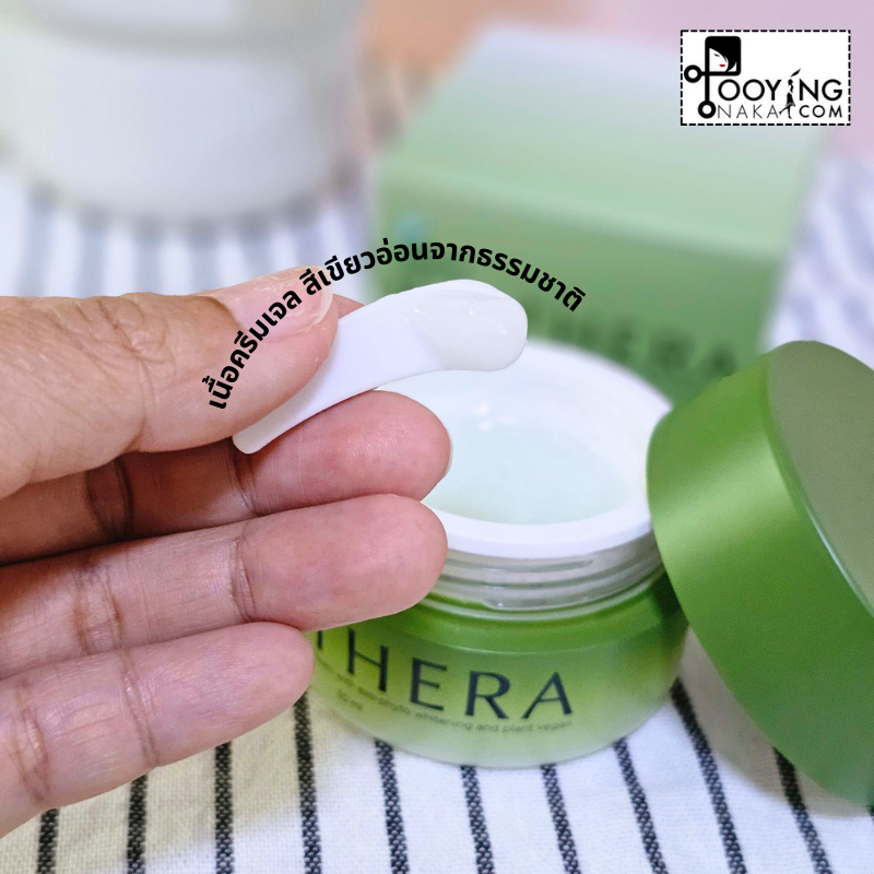 เนื้อครีมเจลนะคะ หยุ่นๆ จะมีสีเขียวอ่อนๆไม่ได้เติมแต่งสี คือสีจากธรรมชาติที่ได้มาจากพืชทั้ง 14 ชนิดค่ะ ส่วนกลิ่นจะเป็นกลิ่นอ่อนๆนะคะ