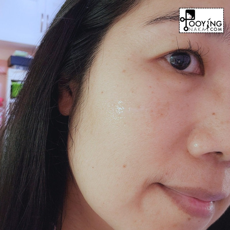 ความเหนอะที่ว่าคือความชุ่มชื้นค่ะ จะเห็นได้ว่าที่ผิวจะไม่ทิ้งความเงามันใดๆไว้เลย