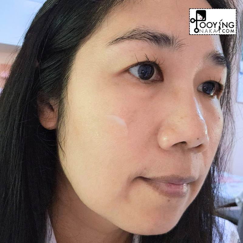 เกลี่ยให้ทั่ว จะรู้สึกถึงความชุ่มชื้นของผิวทันทีเลยค่ะ ลงเยอะก็จะเหนอะนิดนึงนะคะ แต่เหนอะลักษณะยังสบายผิวอยู่