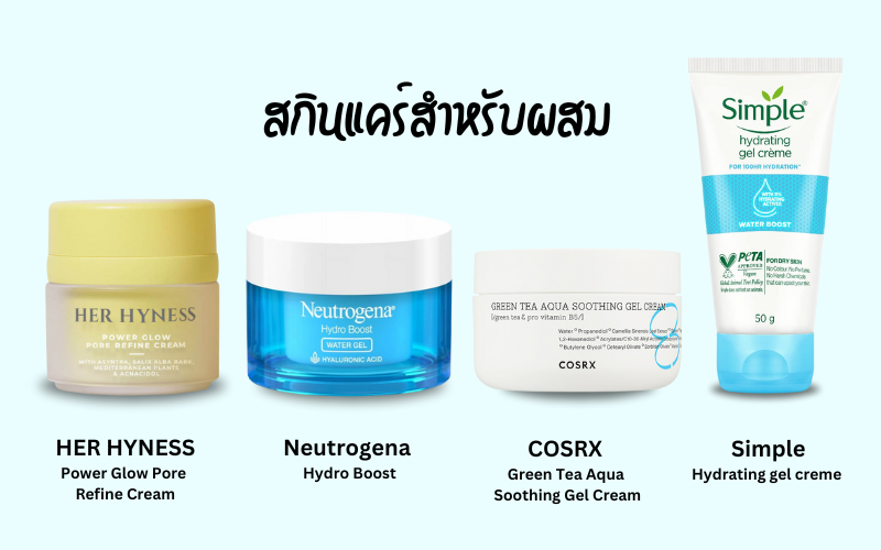 เนื้อสัมผัสที่แนะนำ: โลชั่นหรือเจลครีม ที่ไม่หนักเกินไปและซึมง่าย