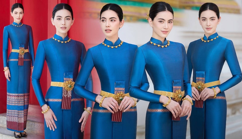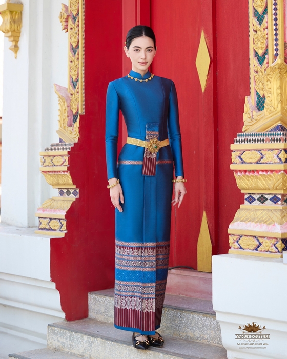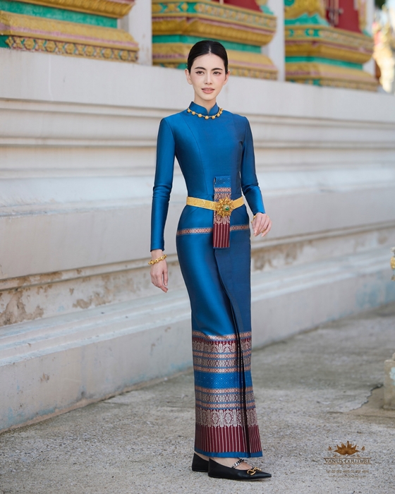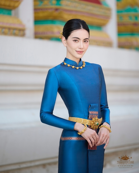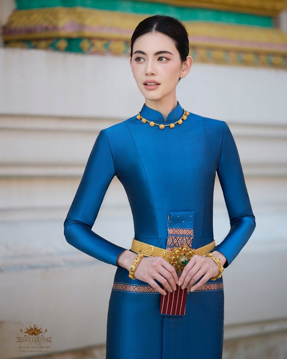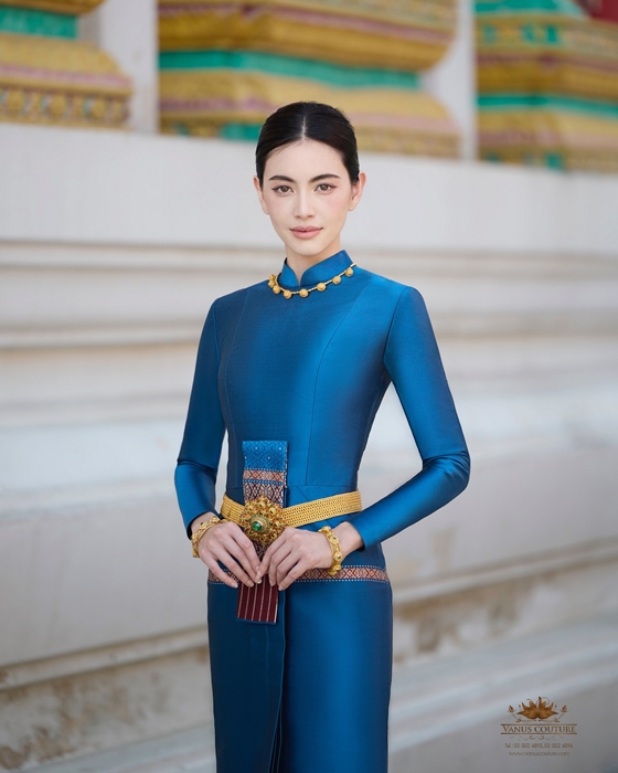 ส่องชุดไทยบรมพิมานสีน้ำเงินครามราคาเรือนแสน