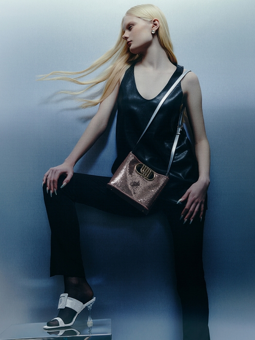 ต่อมา JUIETTA กระเป๋าสะพายไหล่ทรงสี่เหลี่ยมผืนผ้า ไอเทมที่แฝงความงามระยิบระยับของกลิตเตอร์ไปจนถึงเลื่อมปัก แถบปิดกระเป๋าแต่งฮาร์ดแวร์โลโก้ Infinite เพิ่มดีกรีความหรูหรา มีให้เลือกทั้งสีเรียบและแบบกลิตเตอร์สีเงินและสีทอง และกระเป๋าสะพายสายโซ่สี่เหลี่ยมจัตุรัสใบกะทัดรัดที่ปักเลื่อมสีชมพูอ่อนทั่วทั้งใบ