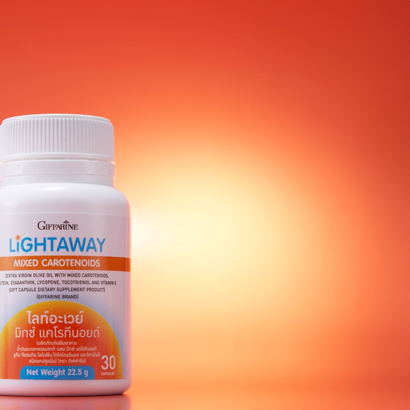 ปกป้องผิวจากการบำรุงแล้ว มาดูแลผิวจากภายใน เสริมด้วยกันแดดแบบทานได้ ตัวช่วยที่ไม่ควรมองข้าม ช่วยให้ผิวแข็งแรงสู้แดด ปกป้องรังสี UV ให้ผิวจากภายใน ด้วย กิฟฟารีน ไลท์อะเวย์ มิกซ์ แคโรทีนอยด์ (Giffarine Lightaway Mixed Carotenoids) ผลิตภัณฑ์เสริมอาหาร น้ำมันมะกอกธรรมชาติ ผสมมิกซ์ แคโรทีนอยด์ อุดมไปด้วย 5 แคโรทีนอยด์จากธรรมชาติ 100%