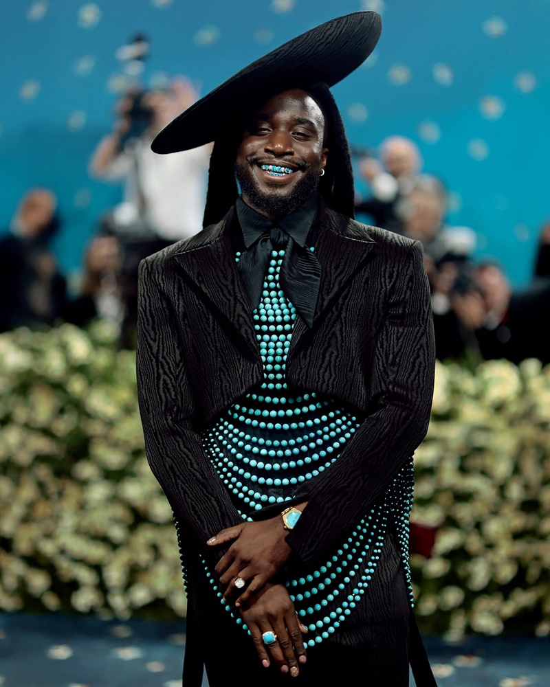 ศิลปินคันทรีชื่อดัง Shaboozey เปิดตัวครั้งแรกบนพรมแดง Met Gala ด้วยลุคสุดเนี้ยบที่ตัดเย็บขึ้นเป็นพิเศษสำหรับงานนี้โดย Robert Wun ซึ่งลุคนี้เป็นการผสมผสานกลิ่นอายคาวบอยตะวันตกเข้ากับสูทลาย moiré สีดำในสไตล์แดนดี้ (Dandy) ที่มีความร่วมสมัย ลุคสุดเท่นี้เสริมความโดดเด่นด้วยเข็มขัดโซ่ลูกปัดที่ประดับด้วยคริสตัลสวารอฟสกี้ สี Jet Black กว่า 2,900 เม็ด