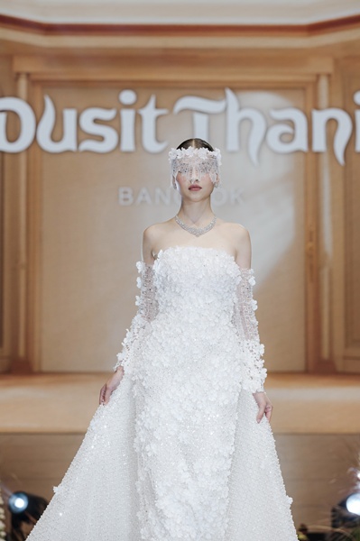 แรงบันดาลใจหลักในการออกแบบชุดแต่งงานสำหรับแฟชั่นโชว์ในครั้งนี้ ได้มาจากห้วงเวลาแห่งฤดูใบไม้ผลิ ดอกไม้หลากหลายชนิดได้แย้มบานอย่างอ่อนช้อยสะท้อนถึงการเริ่มต้นใหม่ที่เปี่ยมด้วยความหวังและความรัก ความงามอันบริสุทธิ์ของ ดอกกุหลาบขาว, ดอกพีโอนี่, และดอกไฮเดรนเยีย ผสานเข้ากับความงามของสถานที่จัดงาน คือ โรงแรมดุสิตธานี ออกมาเป็นชุดแต่งงานทั้ง 13 ชุด ซึ่งถูกออกแบบและตัดเย็บขึ้นใหม่ทั้งหมดจากผ้าเกรดพรีเมียม ประดับตกแต่งด้วยงานปักดอกไม้สามมิติ ที่จำลองความงามของดอกกุหลาบ ดอกพีโอนี่ และ ดอกไฮเดรนเยีย ได้อย่างอ่อนช้อยงดงาม เพิ่มความลักชัวรี่ด้วยคริสตัล Swarovski อย่างมีรสนิยม สามารถสวมใส่ได้ทั้งในงานอินดอร์และเอาท์ดอร์ ที่สะท้อนถึงความต้องการของเจ้าสาวยุคใหม่ที่มองหาความเรียบหรู ทันสมัย และ ใกล้ชิดธรรมชาติ ได้อย่างลงตัวครับ”
