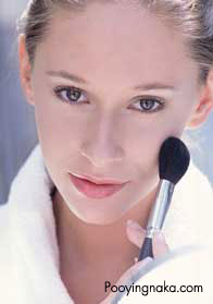 การผัดหน้าทาแป้ง นอกจากจะทำให้ใบหน้าเนียนสวยใสแล้ว ยังทำให้ครีมรองพื้นติดทนนาน ควรใช้แป้งสีสว่างกว่าผิวหรือแป้งโปร่งใส ให้ใช้พู่กันอย่างหนาแตะแป้งแล้วเคาะกับหลังมือหนึ่งครั้งก่อนแล้วทาให้หนาหน่อยบริเวณหน้าผาก จมูก แก้มและคาง