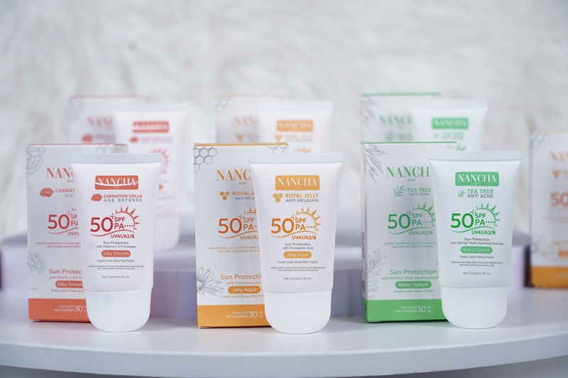 จึงเป็นที่มาของครีมกันแดด “นันช่า (Nancha)” ที่มีเนื้อสัมผัสแบบแมท บางเบา แห้งไว และสบายหน้า ด้วยค่า SPF50+ PA++++ ที่ช่วยปกป้องผิวจากรังสี UVA1, UVA2 และ UVB พร้อมปราศจากแอลกอฮอล์และพาราเบน คิดค้นและพัฒนาสูตรเพื่อตอบโจทย์ผู้ที่มีสภาพผิวและความต้องการที่แตกต่างกันถึง 3 สูตร ได้แก่