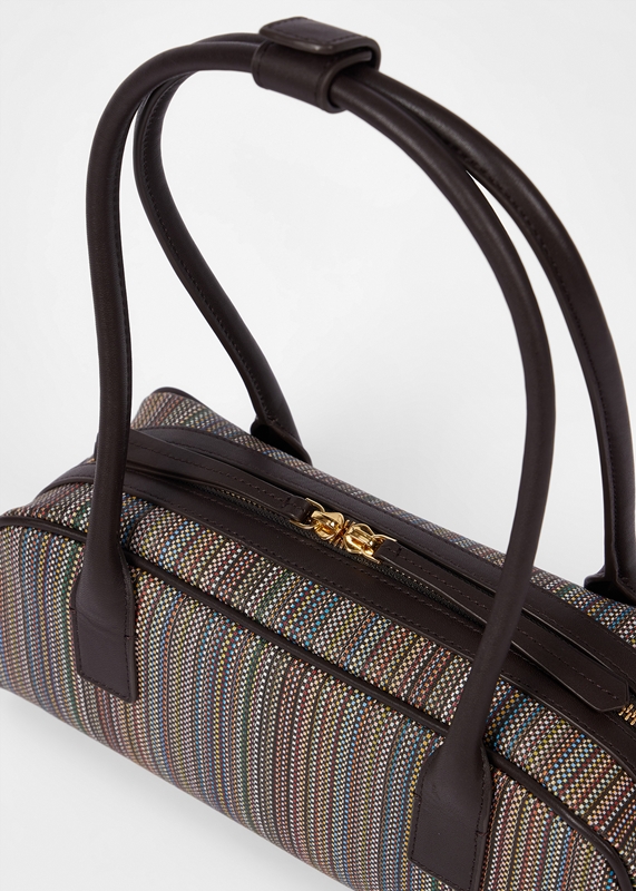 กระเป๋าสะพายไหล่รุ่นนี้ได้ตีความ bowling bag ขึ้นมาใหม่ ซึ่งเป็นสไตล์สปอร์ตสุดคลาสสิกของยุค 2000 ตัวกระเป๋าทำจากผ้าแคนวาสจากอิตาลีที่มาพร้อมกับลวดลาย Signature Stripe อันเป็นเอกลักษณ์ของแบรนด์ในโทนสีนุ่มนวลที่ถักทอด้วยลายตารางหมากรุกซ้อนทับกันอยู่ด้านบน พร้อมตกแต่งด้วยหนังสีน้ำตาลเข้มแบบ ‘Rich Espresso Brown’ ด้านดีไซน์ถูกออกแบบให้มีความคลาสสิกร่วมสมัย ด้วยกระเป๋าทรงยาวและหูหิ้วที่มีขนาดยาวมากขึ้นทำให้กระเป๋ามีสัดส่วนและรูปร่างที่สวยงามรับกันอย่างเหมาะเจาะ พร้อมออกแบบซิปให้มียาวเป็นพิเศษคล้ายรูปทรงเนกไทที่การสะท้อนถึงความเป็นเลิศด้านงานตัดเย็บของ Paul Smith นอกจากนี้ กระเป๋ายังมีขนาดที่พอเหมาะทำให้ Agatha กลายเป็นกระเป๋าที่ใช้งานได้จริงในชีวิตประจำวันซึ่งสามารถพกพาสิ่งของจำเป็นได้อย่างสะดวกสบาย