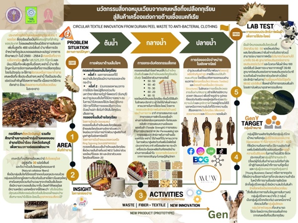นวัตกรรมเส้นใยจากเปลือกทุเรียนนับเป็นอีกหนึ่งต้นแบบของการพัฒนาที่ยั่งยืนเพื่อแก้ปัญหาสิ่งแวดล้อมจากเศษเหลือทิ้งในภาคการเกษตร และยังเป็นการสร้างวงจรเศรษฐกิจหมุนเวียน (Circular Economy) และเสริมสร้างคุณค่าให้กับเศรษฐกิจสีเขียว (BCG Economy Model) อย่างเป็นรูปธรรม