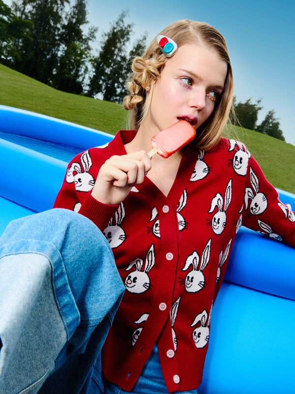 เริ่มกันคอลเลกชั่นเสื้อผ้า Scandi in Colour ที่ได้รับแรงบันดาลใจจากแนวคิด Friluftsliv (ฟรี-ลุฟสต์-ไลฟ์) วิถีความสุขของชาวนอร์ดิกที่ผสานชีวิตไปกับธรรมชาติอย่างเรียบง่าย มีความสุขที่สงบท่ามกลางทุ่งหญ้าเขียวขจีที่เริ่มผลิบาน ใต้ท้องฟ้าโปร่ง ทุกโมเมนต์ถูกตีความออกมาเป็นแฟชั่นที่ให้ความรู้สึกสดชื่น เป็นอิสระ แต่มีสีสัน เต็มไปด้วยลูกเล่นอย่างมีสไตล์เสื้อผ้าคอลเลกชั่นนี้ถูกดีไซน์ต่อยอดแนวคิดให้ชัดเจนยิ่งขึ้น ผ่านซิลูเอตทรงหลวมใส่สบาย เหมาะกับอากาศในช่วงต้นฤดู ก่อนเติมสีสันด้วยแพทเทิร์น Stripe ในพาเลตต์เขียวมินต์และชมพูวานิลา บนไอเทมซิกเนเจอร์อย่างเสื้อถักนิตแขนยาว ดีเทลปกโปโลและแพตช์ปักรูปไอคอนสุดคิ้วท์ คาร์ดิแกนทอลายกราฟฟิก Polka dot ไปจนถึงเสื้อยืดพิมพ์ลายโลโก้ที่แฝงอารมณ์ขี้เล่น สนุกกับการมิกซ์แอนด์แมตช์คู่กางเกงเดนิมหรือกางเกงขาสั้นแต่งโลโก้ และเลเยอร์ด้วยแจ็คเก็ตเพื่อเพิ่มมิติของลุค ปิดท้ายด้วยชุดเอี๊ยมไอเทมเด่นของซีซั่นนี้ที่สะท้อนความซุกซนอย่างมีอิสระได้อย่างชัดเจน เป็นการผสานเสน่ห์สไตล์นอร์ดิก และเจลลี บันนีอย่างลงตัว