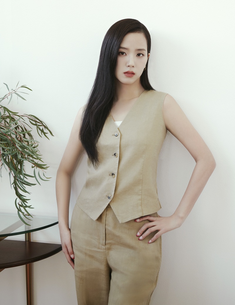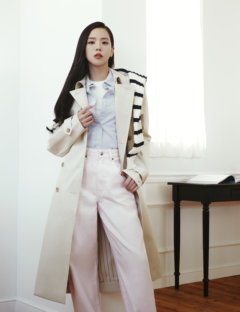 ในแคมเปญ Spring 2026 นี้ JISOO สวมใส่ไอเทมคลาสสิกที่ถูกนำมาตีความใหม่ สะท้อนความงามที่ดูผ่อนคลายแต่ยังคงประณีต ไม่ว่าจะเป็นคาร์ดิแกนลายขวางสีกรมท่าสลับขาว แมตช์กับกางเกงยีนส์ทรงบาร์เรล ซึ่งเป็นไอเทมซิกเนเจอร์ประจำซีซั่น ไฮไลต์อื่นๆ ประกอบไปด้วยชุดสูทเสื้อกั๊กผ้าลินินสีคาเมลสไตล์เพรพพี่และเทรนช์โค้ตแบบโอเวอร์ไซส์ที่ใช้งานได้หลากหลาย สวมทับคาร์ดิแกนถักลายเคเบิลสุดหรู