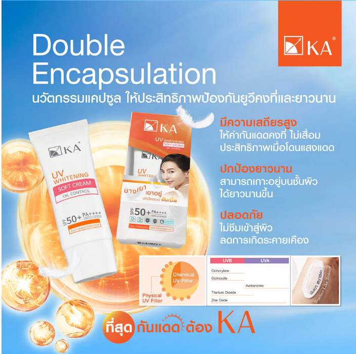 1. กันแดดหน้า: KA UV Whitening Soft Cream SPF50+ PA++++