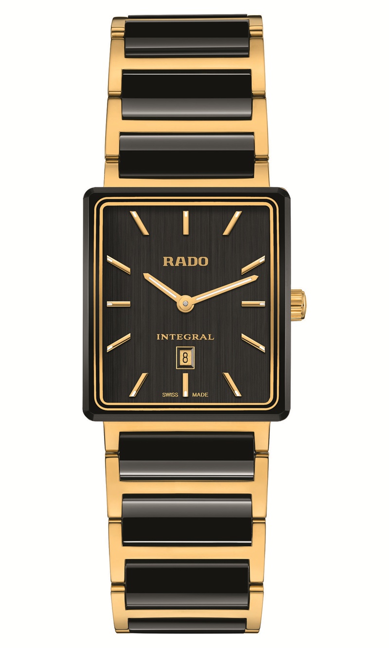 Integral รุ่นล่าสุดยังคงสะท้อนความเชี่ยวชาญของ Rado ในด้านวัสดุ ผ่านการเลือกใช้ ไฮเทคเซรามิกสีดำ อันเป็นเอกลักษณ์ ซึ่งโดดเด่นทั้งในด้านความแข็งแรง น้ำหนักเบา และความทนทานต่อรอยขีดข่วน วัสดุชนิดนี้ไม่ได้มอบเพียงความคงทน หากยังมอบ "ประสบการณ์ในการสวมใส่" ที่แตกต่าง ด้วยสัมผัสที่เรียบลื่น อ่อนโยนต่อผิว และให้ความรู้สึกสบายอย่างต่อเนื่องตลอดวัน ผสานเข้ากับสเตนเลสสตีลเคลือบ PVD สีทอง ถ่ายทอดความหรูหราในมิติที่สงบ สุขุม และลุ่มลึก โดยไม่จำเป็นต้องแสดงออกอย่างฉูดฉาด หน้าปัดสีดำแบบซันเรย์ได้รับการตกแต่งอย่างประณีต ด้วยหลักชั่วโมงและเข็มนาฬิกาสีทอง พร้อมเคลือบสารเรืองแสง Super-LumiNova® เพื่อการมองเห็นที่ชัดเจนในทุกสภาพแสง เสริมด้วยช่องแสดงวันที่ที่จัดวางอย่างสมดุล สร้างความกลมกลืนในองค์ประกอบโดยรวม