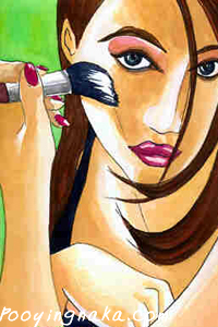 ผมสีเข้ม /ผิวเดิมสีอ่อน แต่ไปอาบแดดจนเป็นสีทอง : ใช้บลัชสีน้ำตาลเข้ม