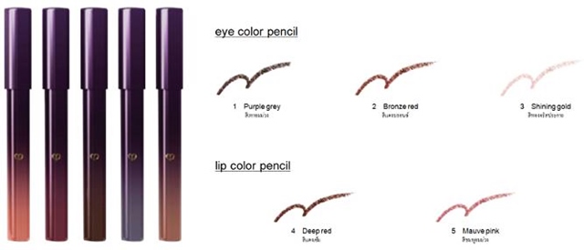 lip color pencil เน้นความงดงามแห่งเรียวปากด้วยสีสันหรูหราล้ำลึก และประกายแวววาวราวกลีบดอกไม้ฉ่ำน้ำค้างท่ามกลางแดนหิมะ ด้วยกลไกการรวมแสง และการหักเหของแสง ดินสอแต่งริมฝีปากแต่ละแท่ง มอบปฏิบัติการควบคู่สามารถใช้เป็นสีเขียนขอบปาก และเป็นลิปสติกได้ในแท่งเดียว