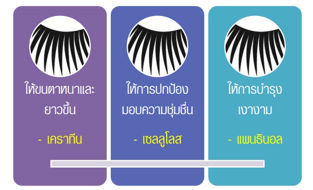 • ช่วยบำรุงขนตาให้แข็งแรง เงางามเป็นประกาย ไม่หลุดร่วงง่าย
