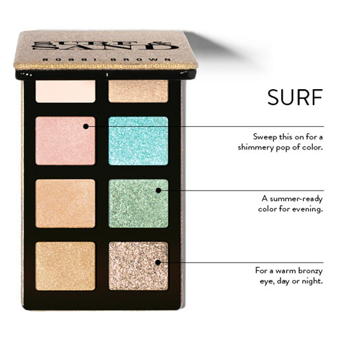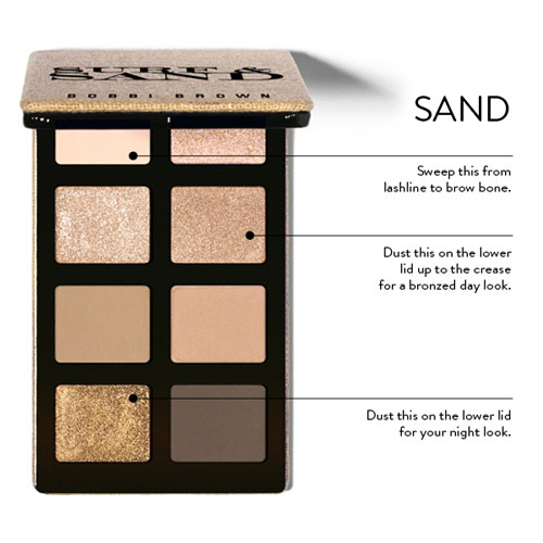 ส่วน Sand Eye Palette จะเน้นสีที่ดูเป็นธรมมชาติใช้ได้กับทุกโอกาส เช่นสีเมทาลิกบรอนส์ หรือ สีน้ำตาลทอง พาเลททั้งสองตลับถูกหุ้มด้วยผ้าที่มีลวดลายที่ดูคล้ายกับเม็ดทรายบนชายหาดลงตัวกับหน้าร้อนที่กำลังจะมาถึง