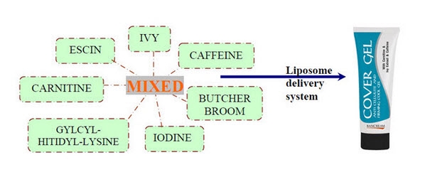 2. สารที่เข้าฟื้นฟูและเพิ่มประสิทธิภาพระบบการไหลเวียนของเหลว (Venotonic effect) ได้แก่ CAFFEINE / BUTCHER BROOM/ ESCIN