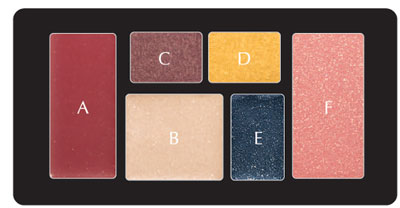 C, D: อายชาโดว์แบบแป้งสีทองประกายและน้ำตาลซาตินระยิบระยับ