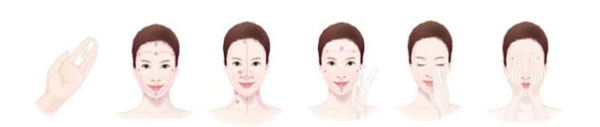 3. เพื่อผิวสัมผัสเรียบเนียนนุ่มลื่น ใช้เทคนิคการเช็ดผิวแบบ UP to DOWN เริ่มจากการวางมือจากบริเวณคางแล้วเช็ดผิวขึ้นสู่บริเวณขมับทั้ง 2 ข้าง จากนั้นวางมือบริเวณกึ่งกลางหน้าผากแล้ววาดลงมาบริเวณขมับ