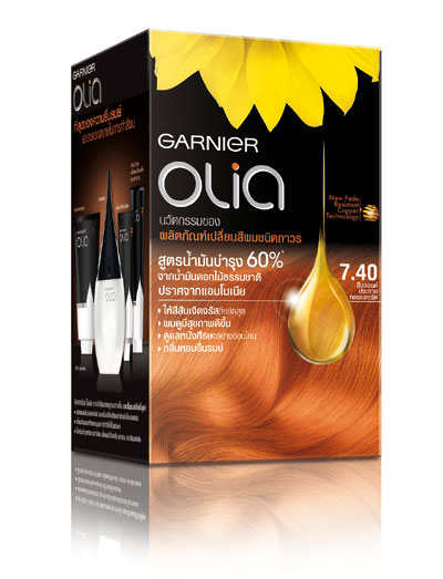 การ์นิเย่ โอเลีย (Garnier Olia) ผลิตภัณฑ์ครีมเปลี่ยนสีผมสูตรปราศจากแอมโมเนีย ที่มาพร้อมกับ 2 เฉดสีแฟชั่นใหม่สุดล้ำแห่งยุค สีบรอนซ์ประกายทองแดงจัด(7.40) และ สีบลอนด์อ่อน(8.0) ให้สาวๆสามารถทำสีผมสวยเองได้อย่างสะดวกสบายที่บ้าน ไม่ต้องพึ่งซาลอนให้เสียเวลา โดยทั้ง 2 เฉดสีแฟชั่นนี้ยังคงไว้ด้วยเทคโนโลยี ODS (Oil Delivery System) นวัตกรรมที่ผสานพลังน้ำมันสกัดจากดอกไม้ธรรมชาติที่เข้มข้นถึง 60% ให้ผลลัพธ์สีผมสวยเจิดจรัส ติดทนนาน และปราศจากแอมโมเนียซึ่งเป็นสาเหตุหลักทำให้ผมแห้งเสีย กลิ่นหอมจากดอกไม้ชวนให้คุณรื่นรมย์ในระหว่างการทำสีผม ให้ทุกๆครั้งที่ใช้โอเลีย ผมดูสุขภาพดี สีผมสวยเจิดจรัสถึงขีดสุด